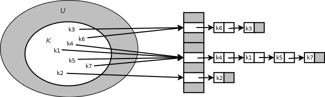 - 충돌이 일어날 경우 데이터들을 포인터를 이용해 서로 링크드 리스트(체인)형태로 연결하는 것