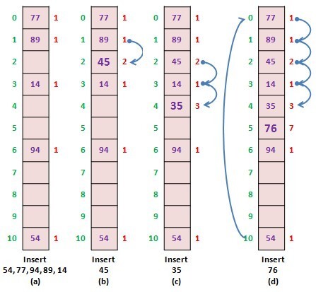 - 충돌이 발생한다면 바로 다음 인덱스에 데이터를 저장하는 방식 다음으로 이동한 이후에도 충돌이 발생했다면 또 다시 바로 다음인덱스에 저장