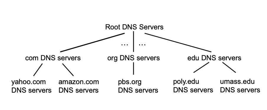 DNS 구조 - distributed, hierarchical database (분산되고 계층적 구조)