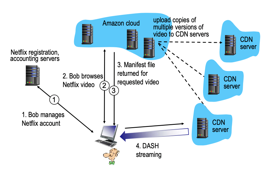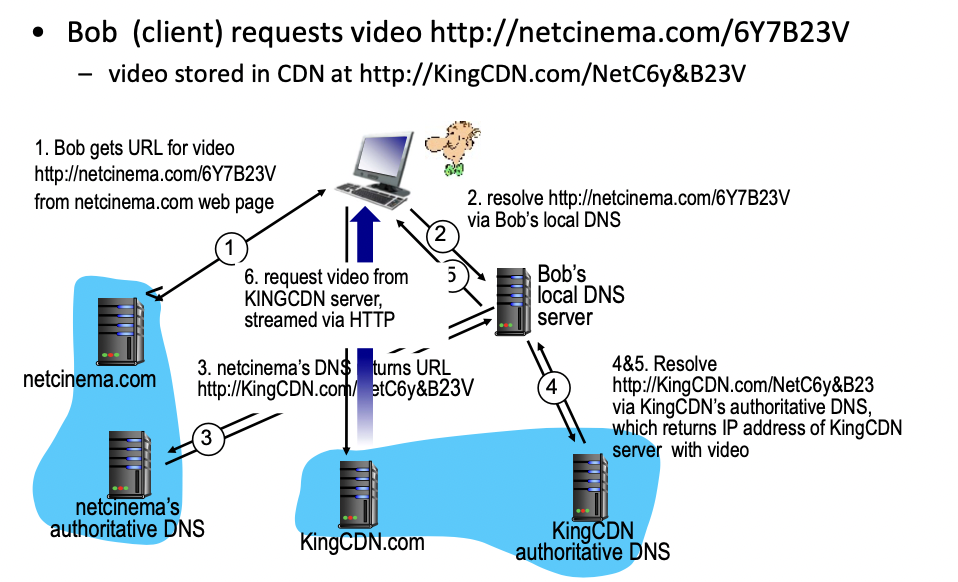 -> CDN 전문 회사로 부터 서비스를 받을 수 있다.(실제 비디오는 kingCDN.com의 CDN에 저장되어 있음, 실제 스트리밍 하는 사이트)