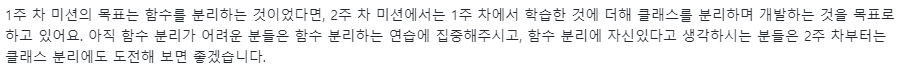 1주차를 끝내고 나서 피드백을 받을 수 있었는데, 피드백을 정리하자면 다음과 같다.